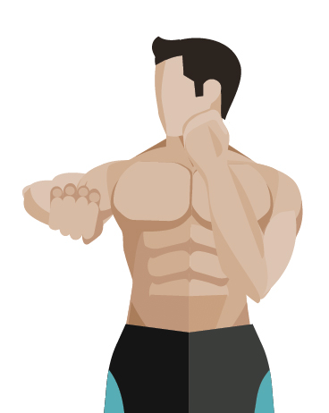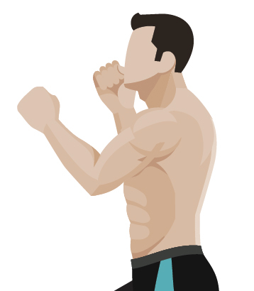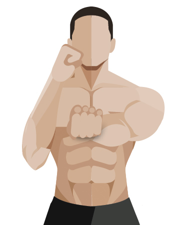 Starting position: Ready/fight stance, elbows bent, fists slightly below chin.