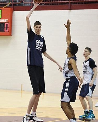 Robert Bobroczky身高2米31,体重172斤。NBA是他的梦想,他坚持锻炼,每次别人都对他的身高感到惊奇!