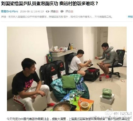 其次,身处异国他乡,口味问题极易让运动员产生水土不服、食欲不振等生理反应,直接影响到运动员在比赛时的心理状态,更严重的是由于饮食不规律而导致的身体问题,最终让运动员无法承受激烈的竞技对抗。一晚家乡味道的泡面自然成了宽慰身心的最佳选择。