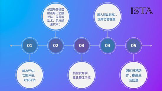 利用ISTA纠正训练模型的系统性策略进行输出,利用手法(筋膜手法、关节松动术、肌肉能量技术等)对局部进行立竿见影的处理与改善,修复错误周边组织对神经的干扰,再利用发育学顺序,重建人体静态运动控制与动态运动控制,最后将功能性训练作为目的,为大众进行体育锻炼打下坚实的基础,同时解决与改善大众常见的肌肉劳损酸痛与非接触性关节损伤。