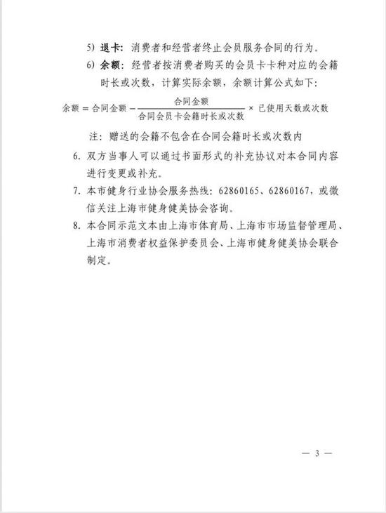 上海市体育健身行业会员服务合同示范文本(2021 版)