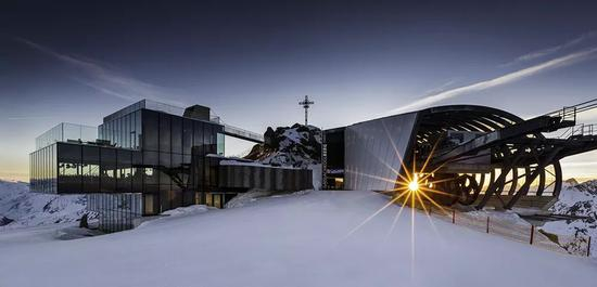 博物馆旁玻璃构造的Ice Q餐厅是奥地利海拔最高的餐厅之一,创新的架构和未来感的设计,加上雪山全景色十分惊艳。来自阿尔卑斯的新鲜食材,运用顶级的烹饪技巧,使得这里从颜值到才华都吸引了“邦德”、施瓦辛格等一众名人和吃货们前来品尝,也被著名的美食榜单Gault Millau所推荐。
