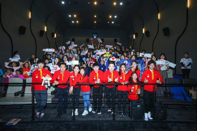 中国花样滑冰国家集训队公益服务系列行动,在演出后的第二天于万象影城和冰纷万象滑冰场分别进行了粉丝见面会以及滑冰教学培训课,这可是喜欢花样滑冰的粉丝们最感兴趣的活动,他们早早在影厅前排起长队,进场后大家举着各自喜欢运动员名字的手牌。在见面会问答环节,粉丝们提出了很多有意思的问题,同时与运动员们的互动也每每能逗笑全场。在现场深圳冰纷万象滑冰场为即将13岁的“妮妮”安香怡准备了生日惊喜,推上来的生日蛋糕,还有全场的生日歌都温馨不已。互动环节结束后,到了粉丝们最期待的签名环节,粉丝们准备了自己珍爱的冰鞋、照片、T恤等物品,10位国家集训队运动员耐心地为粉丝们逐一签名。