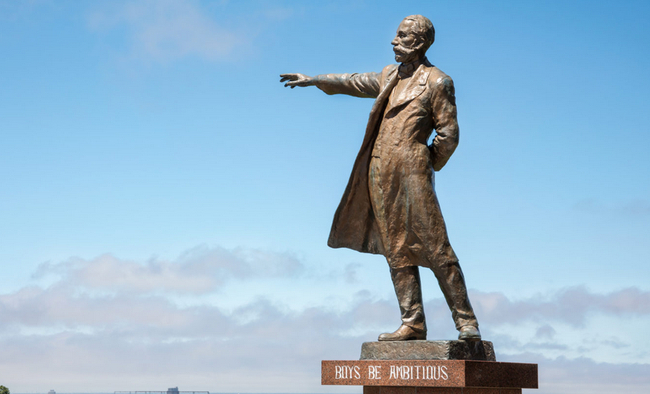 接下来到[羊之丘展望台]的小山丘,有著名的[克拉克博士铜像]伫立其中。近距离观看克拉克博士铜像,比想像中还要大十分壮观,不要错过和它拍照合影的机会哦。另外还有可消除疲劳的免费[足汤]可供使用。