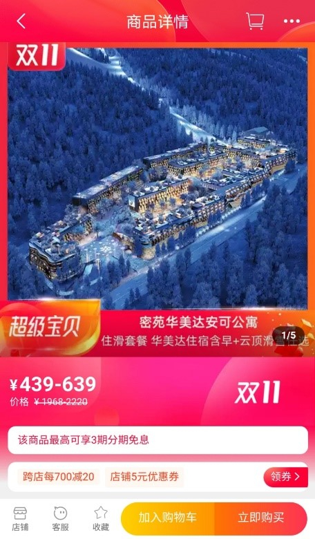 2。 嗨购双11,万达长白山国际度假区推出喜来登、凯悦等酒店结合滑雪票的多款住滑套餐。详情请关注飞猪[万达长白山国际度假区]。
