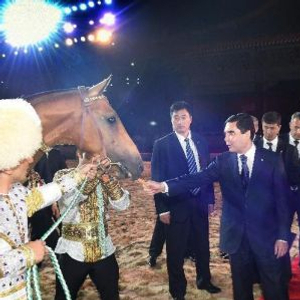 2014年5月12日晚,国家主席习近平与土库曼斯坦总统别尔德穆哈梅多夫在北京共同出席世界汗血马协会特别大会暨中国马文化节开幕式。(资料图)
