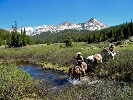 刚开始深入科罗拉多州的几周里,我们经历了各种小坎坷和小胜利。然而,我们险些在中部地区的Collegiate山峰的时候就早早结束了这次冒险旅程。Collegiate 山峰是美国海拔最高的自然保护区之一。我们选择的那条路线还没有被命名,海拔在3800米左右。在朝南方向路面的行进过程中,一切还算顺利,马匹精力充沛,天气一直都挺晴朗;但是当我们离山顶还有15米的时候却因为坡度太陡而没有办法继续前行。