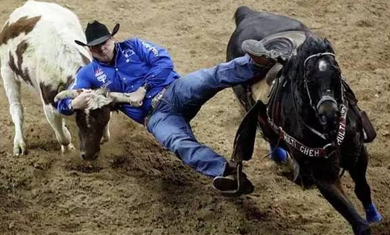 当牛群“炸群”时,牛仔必须以最快的速度骑马追上领头牛,准确甩出套索套住它的头颈或腿,将其拉倒在地加以制服,这样才能阻止疯狂的牛群继续狂奔。
