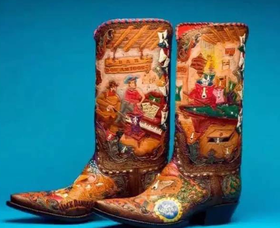 马靴在美国西部几乎和日用品一样普遍,不管是牛仔还是一般的居民都穿,材质有牛皮、鸵鸟皮、鳄鱼皮、蛇皮等等,经过压花、上色,靴子绑高底薄,鞋跟结实,不仅脚感好,还非常美观。一双质量上乘的西部靴,可以穿二三十年不变形。