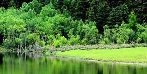 车在原始森林中穿行,翻过一道山梁,来到海拔4000多米的弥里塘高山牧场。停车眺望,在墨绿的群山环抱之中是一片水美草丰的牧场。草场就像碧绿厚实的绿色绒毯一样铺展开来。星星点点的牛马好像珍珠般散落在草场上,安然悠闲地啃食着青草;不时随风传来阵阵轻柔的叮当的脖铃声。那远山、森林、牧场、牧棚、牛群、马群、野花……好一幅恬静、和美的草原画卷!