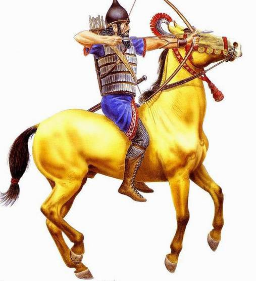 亚述军队中有三种骑兵:轻骑兵,由亚述帝国统治下的游牧民族组成,装备弓箭和标枪;骑弓手,身穿硬皮甲;重骑兵,装备长矛和剑,负责近战接敌。后来,骑兵逐渐取代战车的地位,而后者变得越加笨重,四匹马拉的战车最后成了步兵的运载工具。 亚述弓箭手出现于帝国晚期,马的高度用当时的标准说是14手长,大概就是150公分左右。马的颜色是典型的阿克汗-特克马,今天在土库曼一代还有这样的品种,也是伊朗马的近亲。