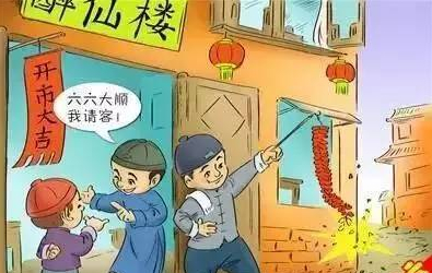 按照汉族习俗,初六是店铺大开张的日子,放鞭炮象征着今年的生意会红红火火,平平安安,大吉大利。旧时,老板和店员们会在这一天猛摇算盘,用秤杆敲打秤盘,让店内响声一片,取“响响当当,大吉大利”之意。正月初六,在旧时是大小商家“开市”的日子,门板要贴上“开市大吉,万事亨通”的大红对联。营业前大放鞭炮,以示吉利