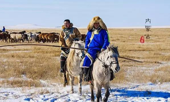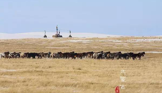 冬季的西乌珠穆沁草原,虽然没有绿草如茵,繁花似锦,但金黄的草场上覆盖着皑皑白雪,牛、羊、骆驼和骏马在茫茫草原上或悠游漫步,或纵横驰骋,好一派冰天雪地,浩瀚无边的草原风光。