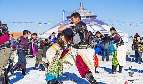 搏克是蒙古族传统的体育娱乐活动之一,草原上的人们把蒙古式摔跤称作“搏克”(蒙语:结实、团结、持久的意思)。它是蒙族三大运动(摔跤、赛马、射箭)之首,不管是祭敖包,还是开那达慕,“搏克”都是绝对不可缺少的主项。