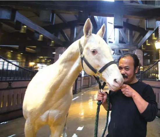 虽然回答得很“不正经”,但陈志峰说的所有的养马理由都是真的,他确实很爱马,用员工的话说,“马就像他的儿子。”因为爱马,上世纪90年代他把自己的公司注册成“野马”;因为爱马,2006年他认养了新疆上百匹普氏野马;因为爱马,2009年他破纪录地从土库曼斯坦一口气进口了23匹纯种汗血马;因为爱马,他曾不顾危险端着相机迎向狂奔而来的马群……如果说,土库曼斯坦人爱马爱到了骨子里,那陈志峰就是爱到了灵魂里,他不仅养马、拍马,还赞助画家画马。据说有一次,他用嘴叼着胡萝卜喂马,结果马吃得急,把胡萝卜直接从他的嘴里拔出来,连带牙也拔掉了一颗。