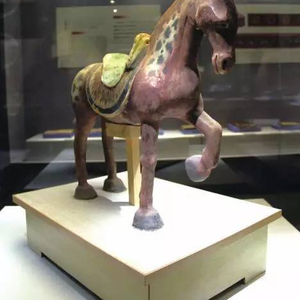 在今天的甘肃省博物馆有一匹铜奔马,它高34.5厘米,长45厘米,宽13厘米,塑像栩栩如生,极为精致。只见它昂首嘶鸣,三足腾空,右后足踩踏一只飞鸟,飞鸟惊慌展翅,愕然回首。它就是博物馆的镇馆之宝,大名鼎鼎的“马踏飞燕”。