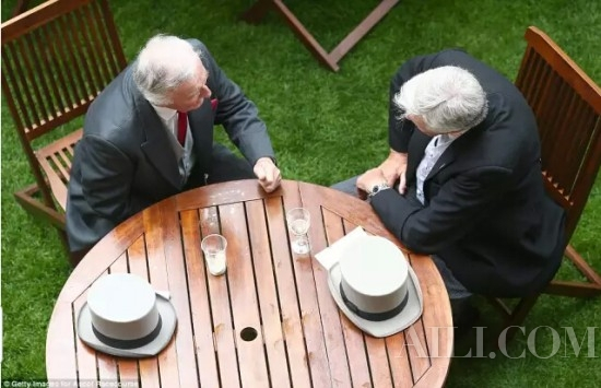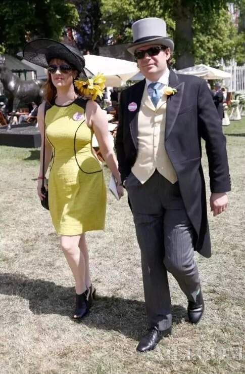 作为一项历史悠久的赛马盛会,皇家阿斯科特赛马会拥有自己的“着装守则”,它所象征的英国赛马运动,是一套包含传统、礼仪、文化在内的完整体系。男士们穿着黑色或灰色的晨礼服,搭配一顶倍显绅士风范的礼帽。