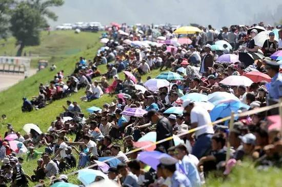 一早,赛场周边已经戒严,远远近近的山坡都停满了各式的车辆,进入看场的和没能进去的都在寻觅着最佳的观赛区域。一待晨曦的凉意散去,赛事的温度便很快升起。“中汇鑫源杯”4岁以上马组1000米、“野马杯”汗血马组1000米、“玉龙杯”2岁马组1000米、“佳弘杯”走马组1000米、“东兴杯”3岁马组1000米、“天山生物杯”无限定马组10000米,连翻上演,每场赛事的奖金设置最低不下10万元。赛场上人马奔驰,尘土飞扬,观众的欢呼声驾着风惊动了整片草原。