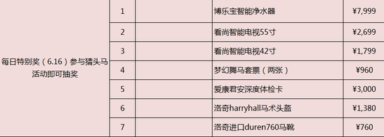 第三重大奖:凡参与猜头马活动即可抽奖,奖品清单如下。