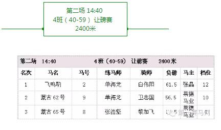 第二场比赛是2400米让磅赛,最终夺冠的是张晶的“飞鸣馰”。比赛开始算是出闸顺利,大部分骑师和赛驹都选择留力策略,但是莱德马业的“蒙古62号”却像脱缰的野马拼命地飞奔,拉开了十几个马身的距离。一直守住二位的“飞鸣馰”留力留得相当好,在最后四百米发力追赶势如破竹,而此时“蒙古62号”已后续乏力,“飞鸣馰”成为本场当之无愧的头马。“蒙古62号”、“蒙古65号”屈居二三。