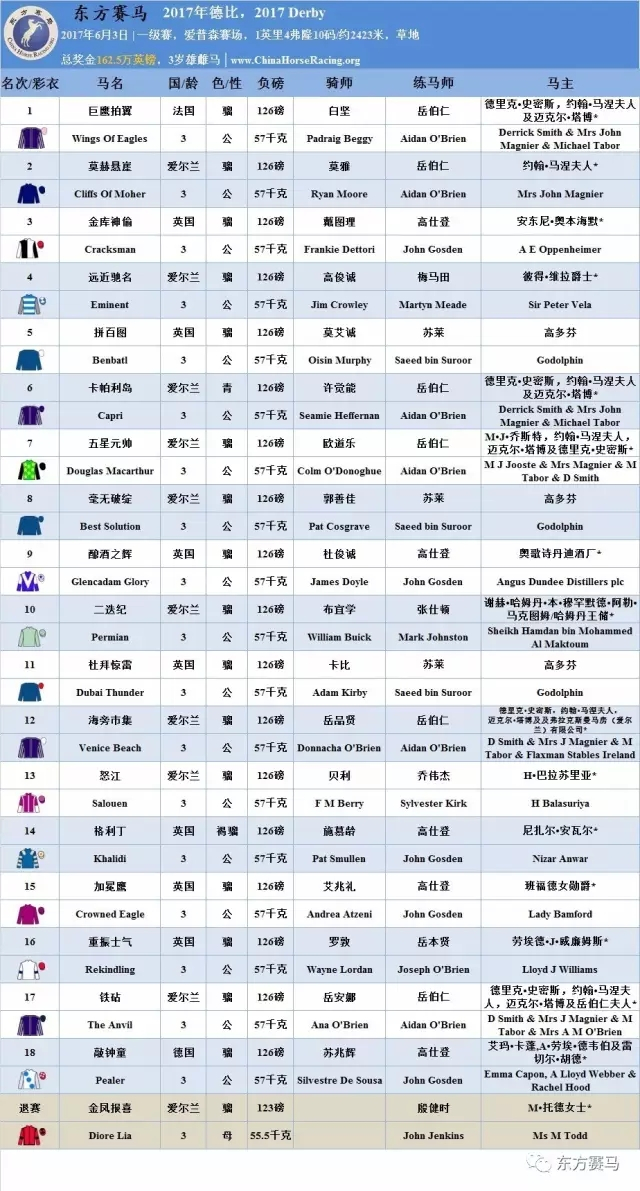 6月3日,英国平地赛迎来了全年奖金最高的比赛—德比(Derby),总奖金162.5万英镑/约1426万人民币。