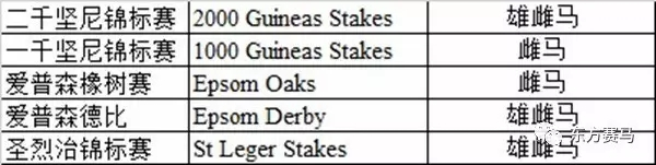作为五大经典赛之一,这场比赛只限三岁(three years old, 3YO)的纯血马参加—雄雌马(entire colts and fillies,雄马 = colt,雌马 = filly),不包括骟马(gelding,前面的entire一词暗含了“不包括骟马”):