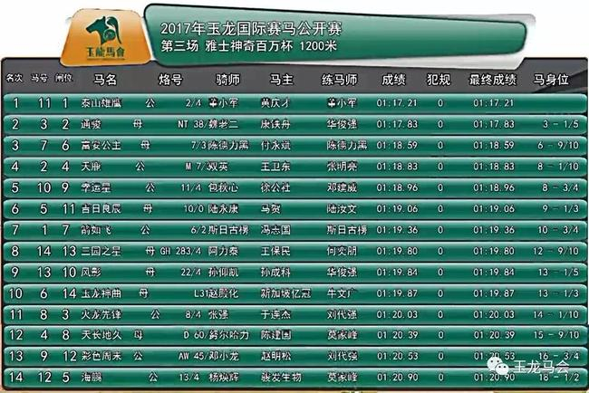 第三场、雅士神奇百万杯 1200米