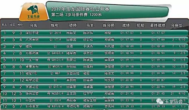 冠军:“深信不疑”,马主:陈洪伟,骑师:柯凯文