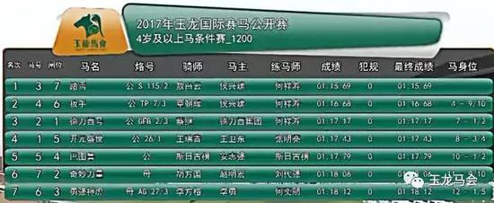 冠军:“吉地生辉”,马主:玉龙马业,骑师:黄剑辉