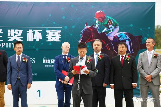 接下来,山西玉龙投资集团董事长、山西玉龙马会董事长张月胜代表东道主致欢迎辞。张月胜董事长对爱尔兰本场赛事赞助方的代表来到现场表示感谢。通过举办这样一场高水平高奖金的比赛,让中国观众有机会欣赏到顶级爱尔兰纯血赛马的风采。玉龙国际赛马公开赛至今已举办第10赛事日,张月生董事长感谢社会各界对玉龙办赛的支持,希望春夏赛季的下半场,以及即将举办的秋冬赛,继续得到大家的积极参与,最后预祝各位马主能在玉龙赛场取得好成绩。