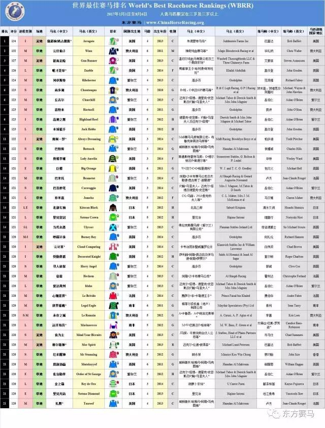 8月10日,国际赛马组织联盟(International Federation of Horseracing Authorities, IFHA)公布了世界最佳赛马排名(World‘s Best Racehorse Rankings, WBRR)。