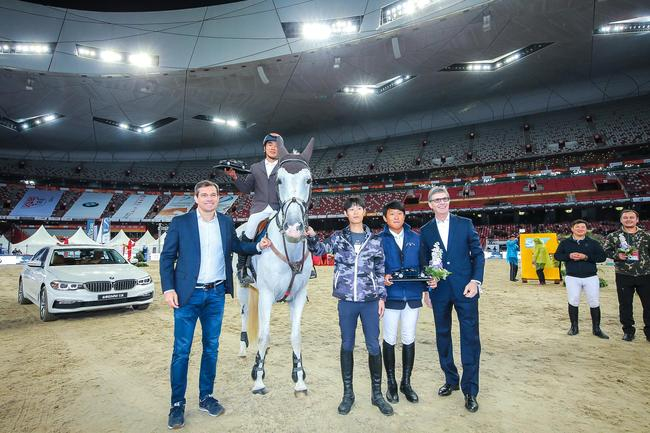 在宝马精英赛环节后,首次在大师赛亮相的宝马车马风尚赛为当日赛事贡献了最大的欢呼。车马风尚赛别出心裁令车与马同台竞技,是爱车人士必看的心头好。骑手们和自己的亲友组队,一个骑马跳跃障碍,一个驾驶宝马汽车接力。一共有7对骑手和车手报名参加,组队的有夫妻、母女、兄弟等。身边良骥嘶鸣,宝马引擎轰响,观众的热情被调动起来,全场一起欢呼加油,共同沉浸在马术与驾驶的速度与激情中。最终骑手董飞与马主段义华以总成绩97.83秒摘得鸟巢赛场上首个车马风尚赛冠军!骑手艾孜孜艾尼娃尔与哥哥张钢、骑手哈旦朝鲁与马主王博分获第二、第三。