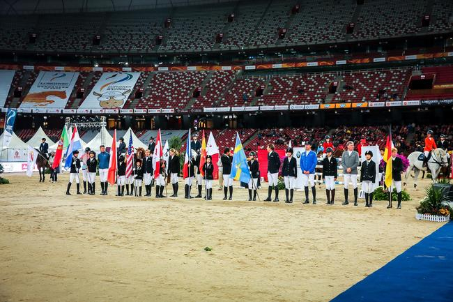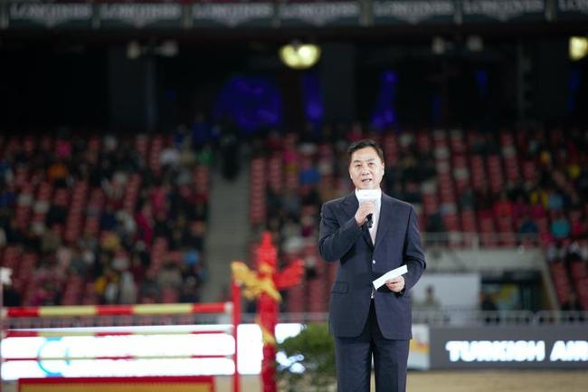 随着夜幕降临,鸟巢赛场灯影流转,华灯璀璨,换上另一副优雅气派的妆容。为了让更多人享受马术生活的魅力和乐趣,今年大师赛的定制的嘻哈风主题曲《骑士时代》在开幕式伊始就将鸟巢气氛带至沸腾。随后浪琴表副总裁兼国际营销总监胡安•卡洛斯•卡佩里先生(Juan-Carlos Capelli)和浪琴表中国区副总裁李力先生、宝马集团大中华区总裁兼首席执行官康思远先生(Olaf Kastner)先后登台致辞,预祝本届大师赛圆满顺利。