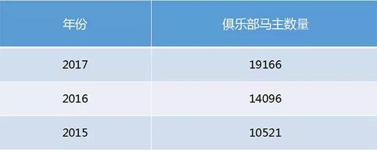 调研数据显示2017年每家俱乐部拥有马主数为13.2人。全国马主总数约为19166人。