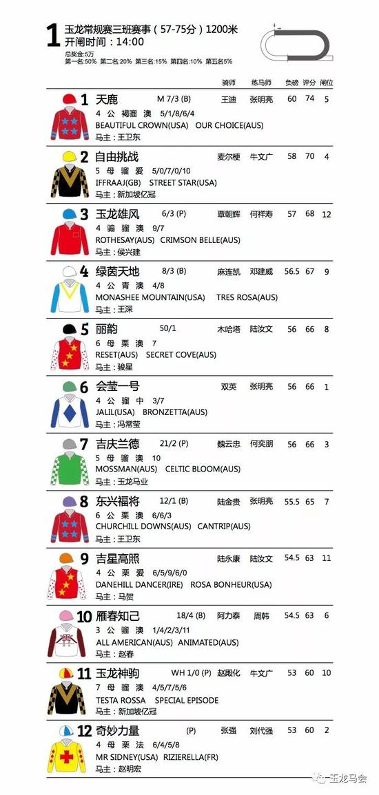 1、玉龙常规赛三班赛事(57-75分) 1200米