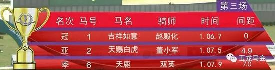 冠军:“吉祥如意”,马主:新加坡亿冠,骑师:赵殿化