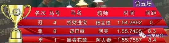 冠军:“招财进宝”,马主:陈洪伟,骑师:杨文峰