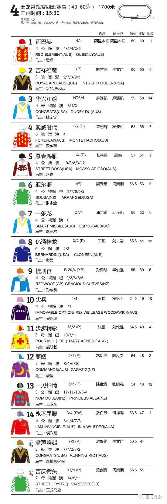 4、玉龙常规赛四班赛事(40-60分)1700米