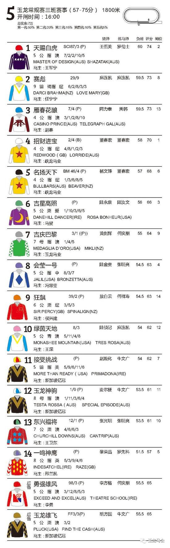 5、玉龙常规赛三班赛事(57-75分)1800米