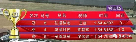 冠军:“亿通神龙”,马主:秦磊,骑师:王彤