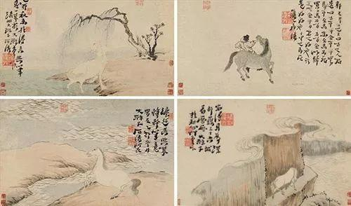 清代在画马方面有较大的发展,先后出现了不少画马专家。例如晚清著名画家石涛。石涛画马,师法李公麟、赵孟頫,善以精圆线条勾画马体。