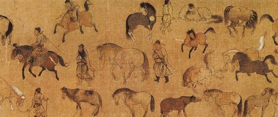顾恺之《洛神赋图》局部。以人物画闻名于世的顾恺之,兼善画马,其传世名作《洛神赋图》中描述了姿态各异的骏马。