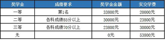 注:学费分两次交清,入学报到时交纳23800元/人;两个月封闭培训结束后,根据各科结业成绩发放奖学金并交纳剩余学费。