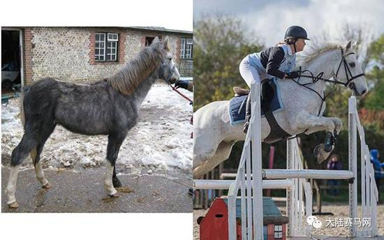 “第一张是4岁时候拍的灰色的苏格兰运动马,现在是11岁的样子。”