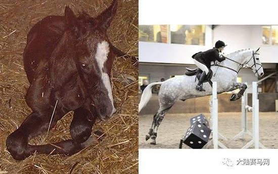 “这张是他在3个月大的时候,他的第一任马主从屠宰场把他救下来的,和其他几匹小马驹一起豁免。剩下那张就是上个月拍的,6岁的时候。”