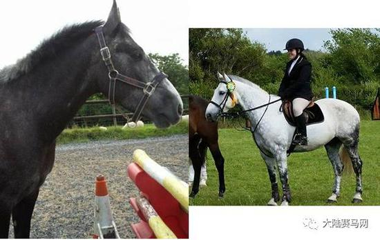“他叫Jackson,父亲是Chamfron Kukri。他生来是栗色的,但是现在7岁的他已经变成灰色的。我保证这是同一匹马儿!”