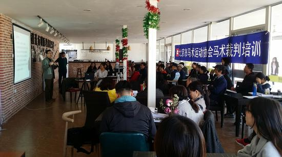 2018年3月24、25日,北京市马术运动协会在北京翊天行国际马术俱乐部举办了马术场地障碍比赛规则培训暨马术障碍裁判培训班,来自全国各地的教练员、骑手、马术爱好者及在校大学生共五十余名学员参加了为期两天的培训。