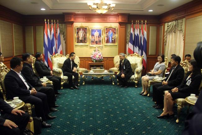 当日下午,代表团前往泰国国会,受到泰国国会秘书长素拉萨·频卫先生的正式接见,双方就中泰马业联动项目进行了深入交流,素拉萨·频卫先生在听完中方代表的介绍后表示国会及相关政府部门会积极做好协调工作,为项目的顺利实施给予多方面的支持。