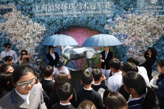 为期三天的2018上海浪琴环球马术冠军赛4月20日上午在中华艺术宫正南盛大开赛。今年是这项全球最高级别马术障碍赛落户上海的五周年,除了精彩纷呈的巅峰对决外,赛场全新升级观赛体验,为所有看台都加设了顶棚,并进一步优化了外场氛围的营造,让人眼前一亮。