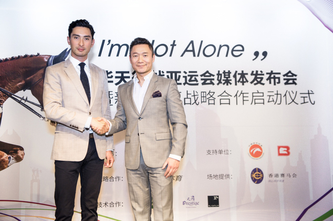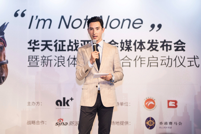 北京,2018年4月26日——中国奥运骑手Alex华天今天在北京香港马会会所举办征战雅加达亚运会媒体发布会,并现场宣布了全新的备战口号“I’m not alone”(并肩而战)。同时,他还宣布与新浪体育达成战略合作,共同扩大马术运动的影响,推动马术文化在中国的发展。中国马术协会业务负责人钟国伟、中国马术队领队孙立生,北京马术运动协会会长姚革,北京马术运动协会秘书长陈彻,新浪网高级副总裁、新浪体育总经理魏江雷等出席了发布会。